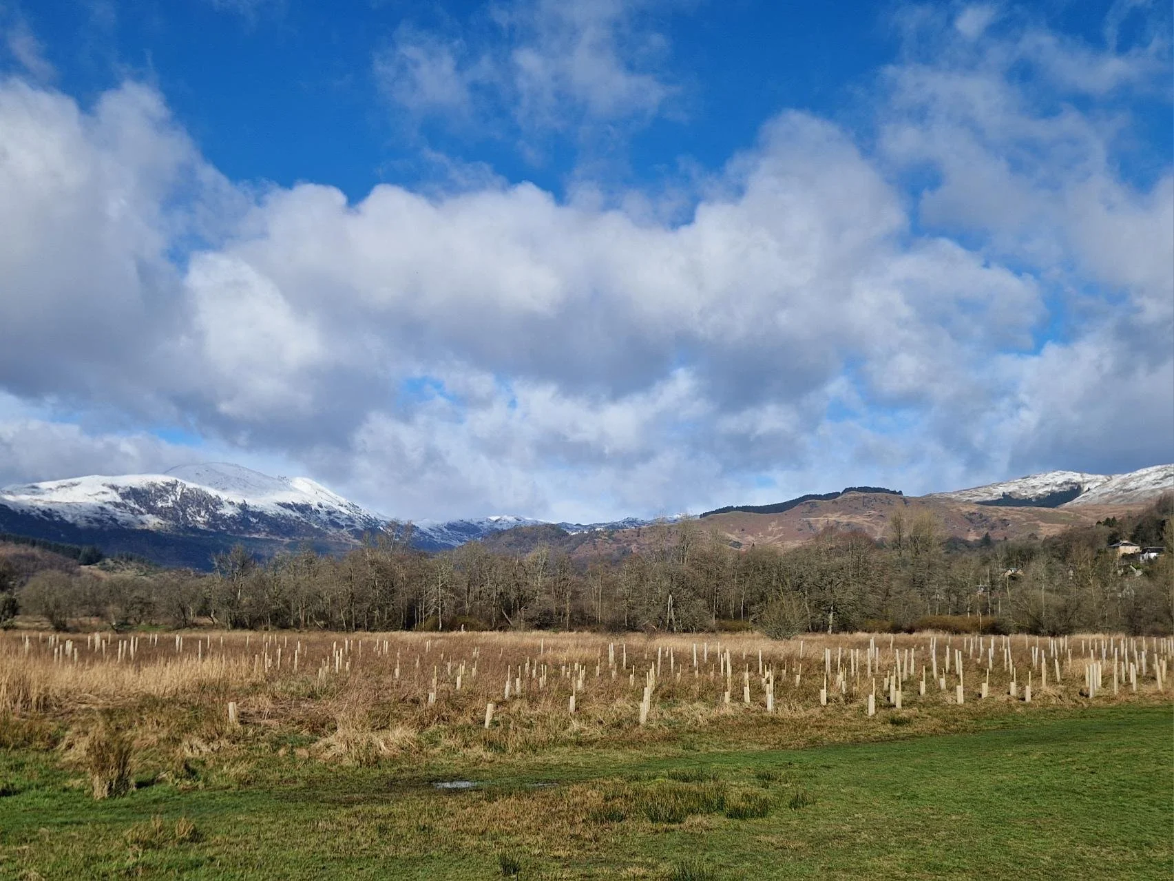 One of the recommendations from the Green Adventure Gateway project report was the planting of more riparian woodland habitat along the River Teith. By planting around 2,000 trees - including different types of willow, and alder - the initiative establishes a “woodland mosaic” to mitigate rising water temperatures and support the river habitat health. The design, informed by detailed spatial mapping, uses varying planting densities and sacrificial willow coppices to manage beaver and deer herbivory. The initial planting took place in March 2026 with the help of volunteers, and will be monitored and maintained annually. This project is made possible with delivery expertise from Forth Rivers Trust and funding from Forth Climate Forest.